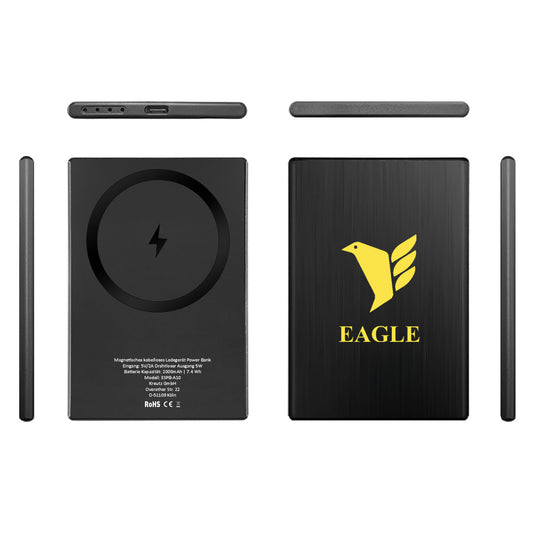 Zum ProduktPowerBank im edlen, transparenten Design, mit Ladestandsanzeige, Wireless Charger und magnetischer MagSafe Funktion.