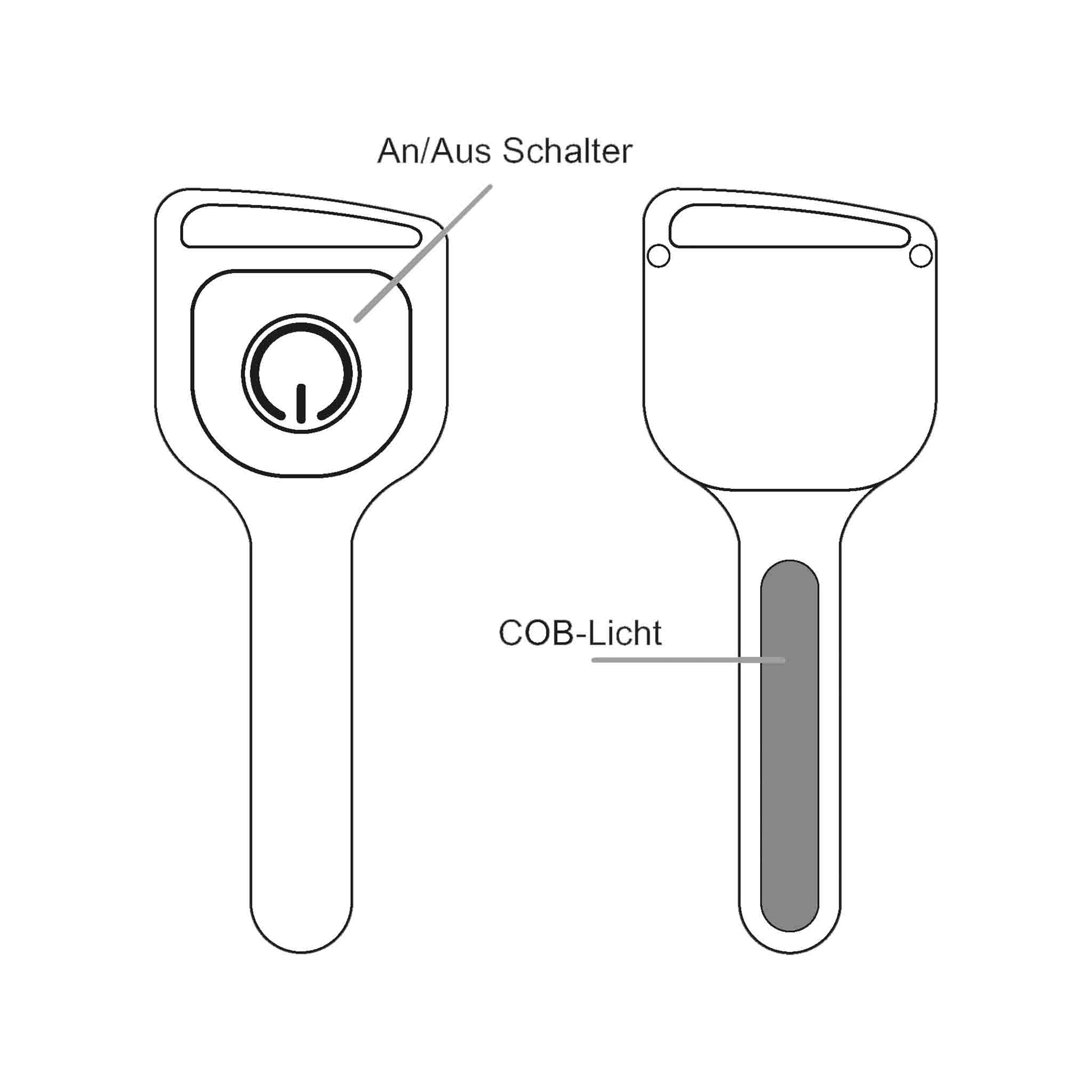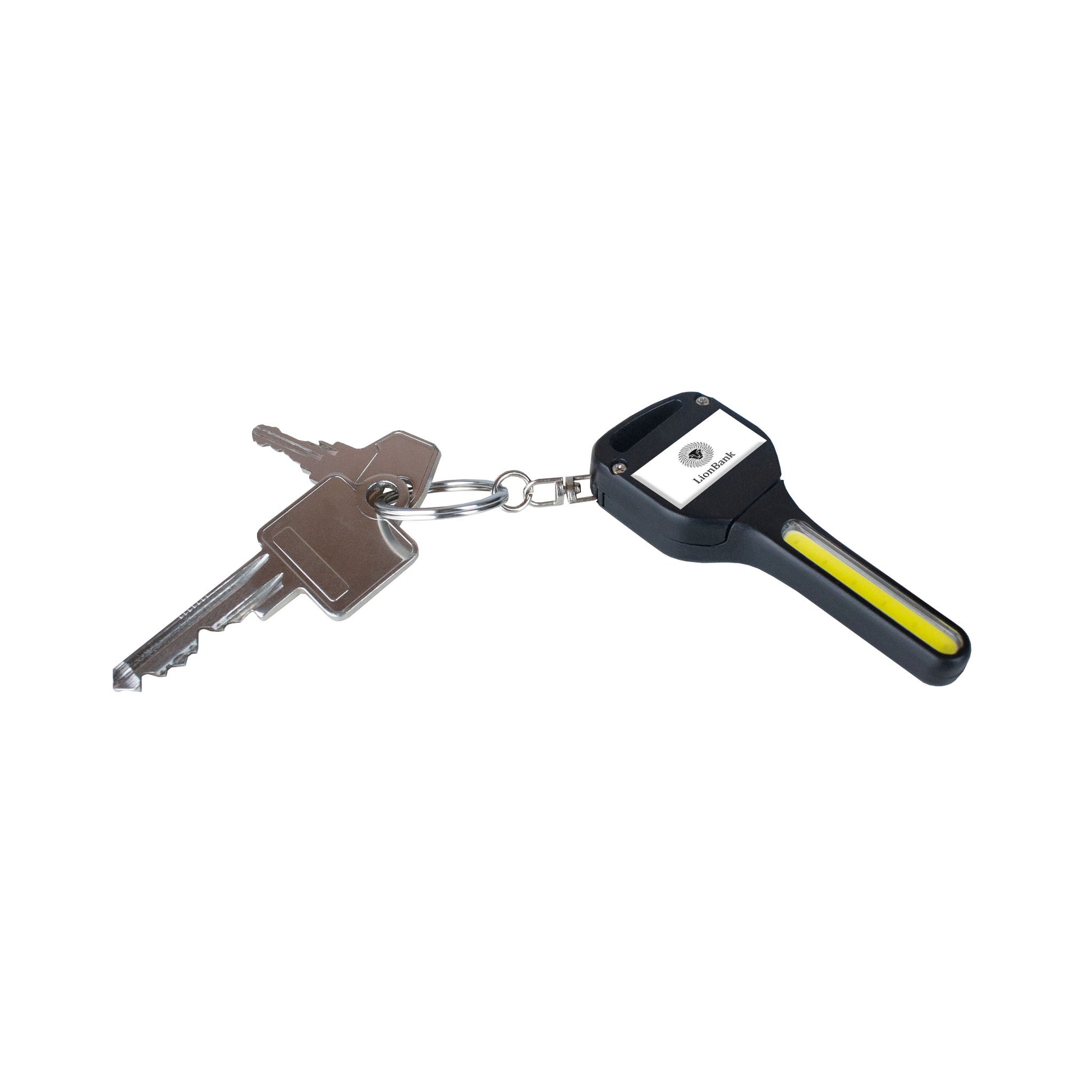 Schlüsselanhänger mit integrierter COB-Lampe mit 3 verschiedenen schlüsselförmigen Lichteinstellungen.