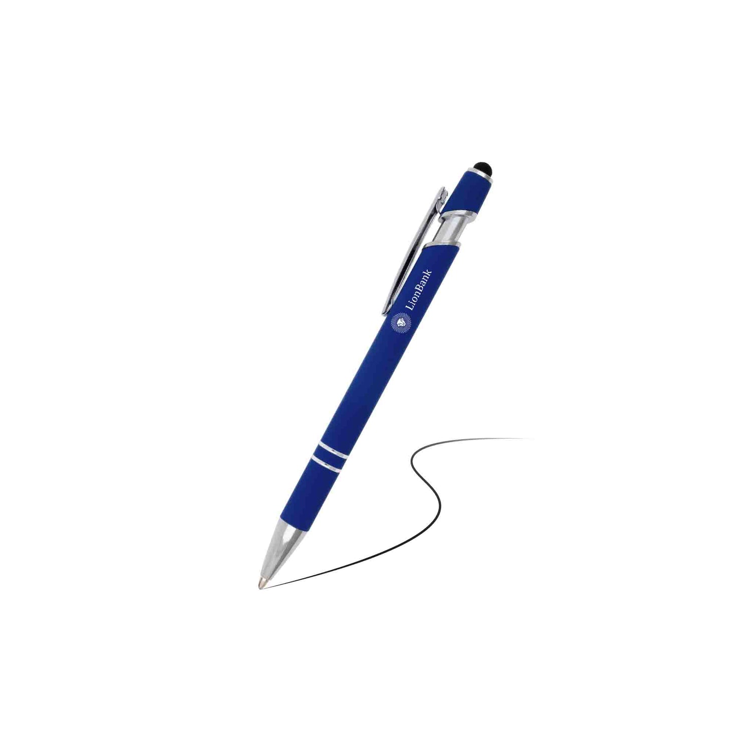 - Metal touch ballpoint pen with soft touch surface. The soft-touch surface gives the ballpoint pen a special feel. The rubber push button with touch function can be used to operate smartphones and tablets. The ballpoint pen has a shiny tip, clip and metal decorative rings.