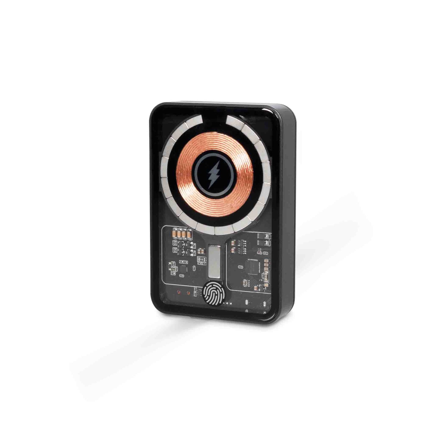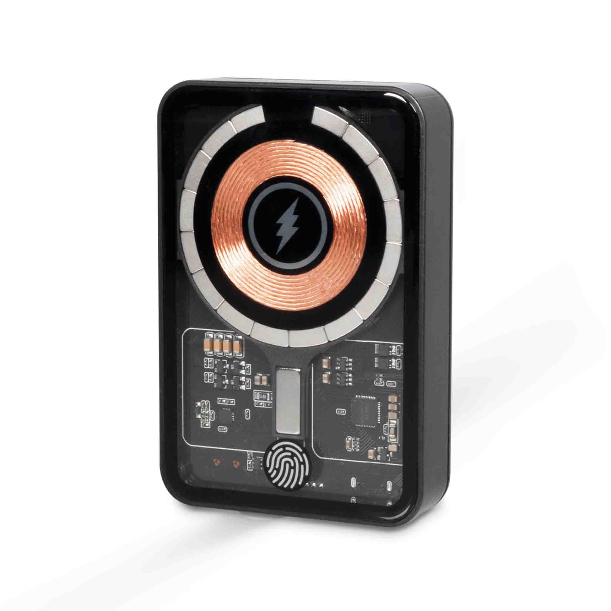 PowerBank in an elegant, transparent design, with charge level indicator, wireless charger and magnetic MagSafe function. The built-in premium magnet ensures instant and accurate alignment with your smartphone's wireless charging point, ensuring a fast and stable wireless charging experience.