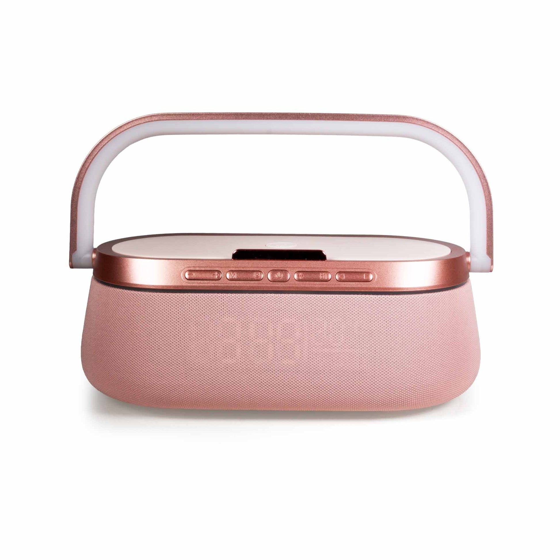 Exklusives Wireless Ladegerät mit Bluetooth-Lautsprecher, Uhr und Ambientebeleuchtung